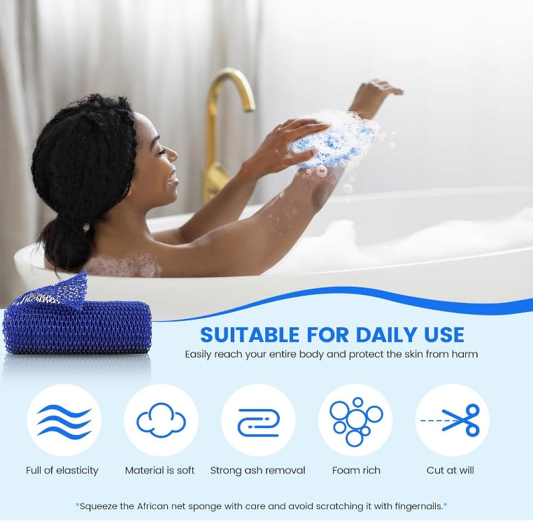 - Our African net sponges are a natural body exfoliator. They are long and stretch to reach those hard areas, such as the back. They can be used for exfoliating all areas of the body including your back, hands and feet.